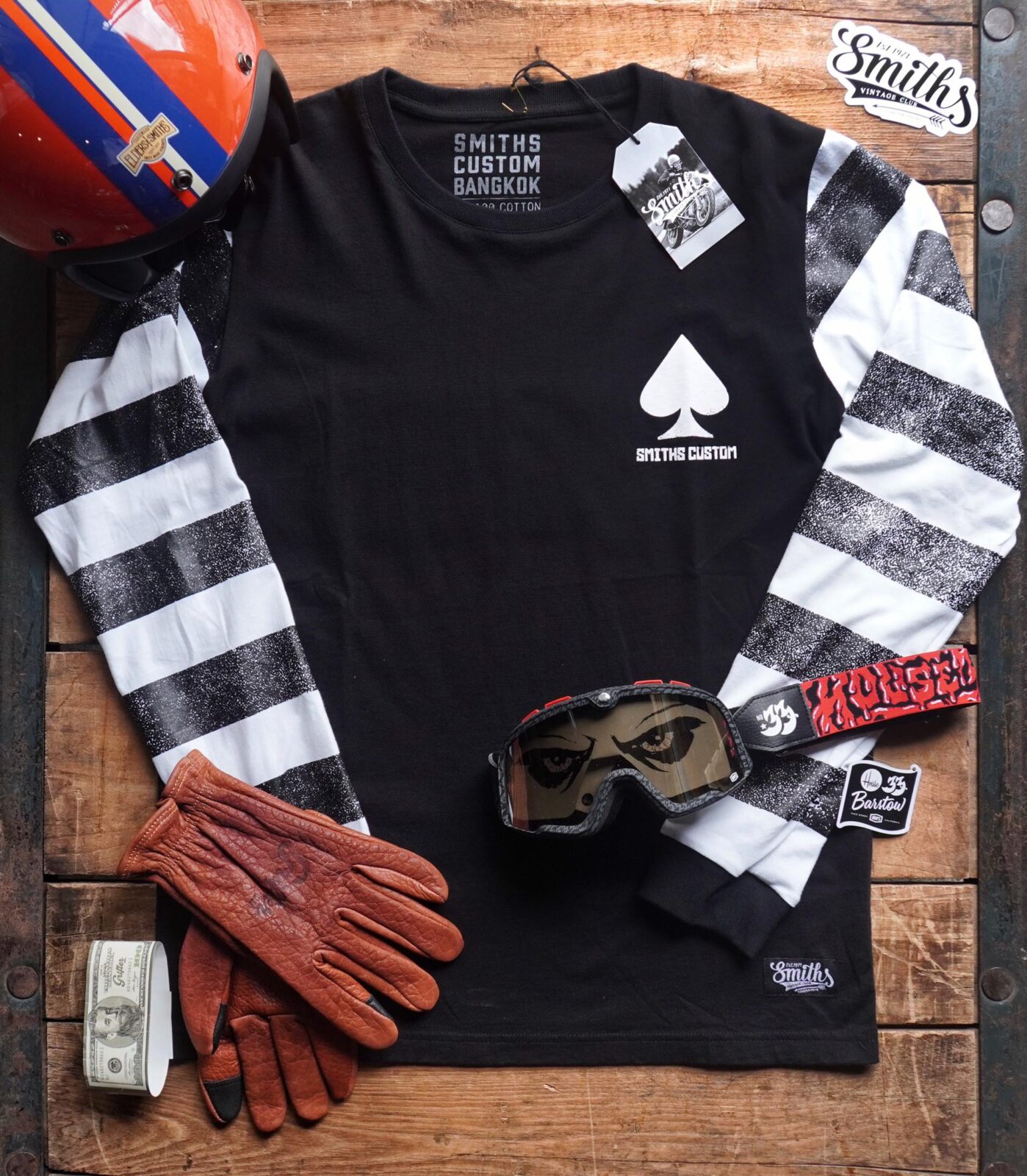 ………………………………………………………………………………………………………………เสื้อยืดแขนยาว Smiths Custom ผลิตจากผ้า cotton 100% ใส่สบาย เหมาะกับสภาพอากาศบ้านเราเป็นอย่างดี ดีไซน์เท่ ด้านหน้าสกรีน smiths custom ส่วนด้านหลังไม่มีลาย เหมาะสำหรับไบเกอร์ และ ยูเซอร์ทั่วไป ใส่ขี่มอร์ไซค์ หรือใส่เที่ยวก็ดี
